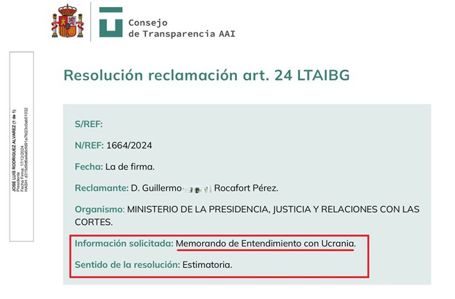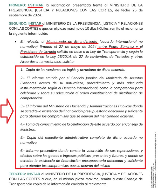 El Gobierno de Sánchez está INCUMPLIENDO desde hace casi un año la Resolución 1664/2024 del Consejo de la Transparencia de España que le obliga a petición mía a DESVELAR los detalles de su MILLONARIA AYUDA ECONÓMICA al Régimen de Zelenski.