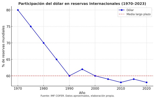 El dólar ha mantenido su posición de moneda de reserva, aunque nunca con tanta fuerza como la que llego a tener antes del shock de Nixon.