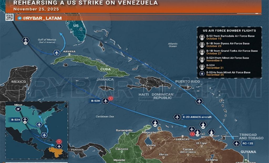 En el marco del despliegue militar estadounidense en el Caribe, las medidas coercitivas contra Venezuela aparecen como operaciones técnicas de gestión del riesgo. El ejército estadounidense ha intensificado patrullajes navales y aéreos en aguas cercanas a Venezuela bajo el rótulo formal de "operaciones antidrogas" con el uso explícito de fuerza letal contra embarcaciones civiles o incorporadas a operaciones comerciales (petroleras) y redes logísticas no militares, algo que la ESN 2025 autoriza como reemplazo de la "estrategia exclusivamente policial de las últimas décadas" (p.16).