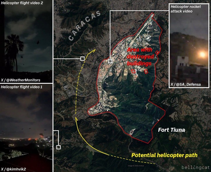 - Los helicópteros militares estadounidenses🇺🇸, durante el ataque a objetivos en Caracas, entraron desde las montañas y zonas deshabitadas a una altitud extremadamente baja, permaneciendo en la "sombra" de la defensa aérea venezolana, que ya estaba debilitada por la acción de guerra electrónica y un ataque cibernético.
