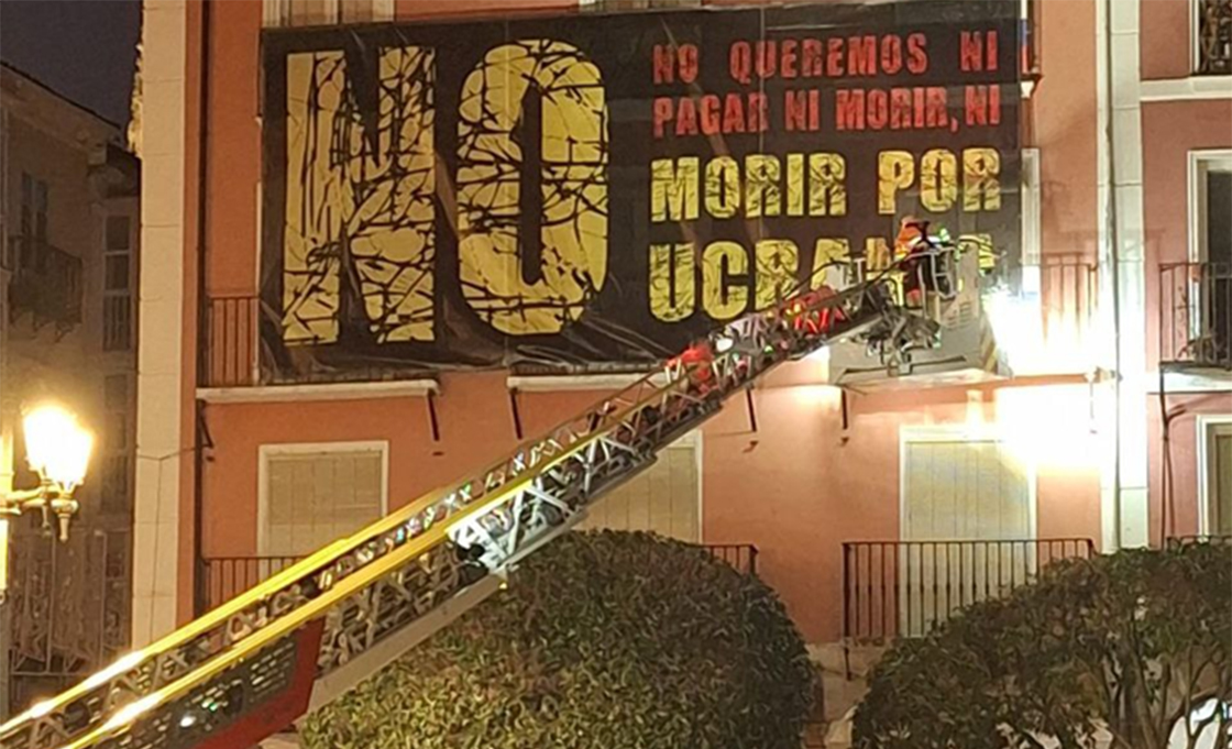 El ayuntamiento de la ciudad española de Burgos ha decidido retirar ilegalmente el cartel de 35 metros cuadrados contra la participación de España en la guerra de Ucrania que desplegaron los amigos y camaradas de la Plataforma Europea de Amigos de Rusia (PEAR) frente a la alcaldía de la ciudad el pasado 5 de enero.