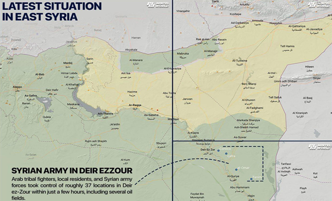 En Deir ez-Zor y Raqqa, el gobierno de Damasco ha obtenido una expansión significativa de territorios gracias a los levantamientos del "Ejército Tribal Árabe", que tiene mayoría étnica en esas áreas.