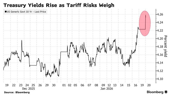 ▪️Los bonos del Tesoro de EE. UU. se han unido a las ventas en el mercado mundial de bonos debido a preocupaciones sobre los gastos presupuestarios, una nueva amenaza geopolítica en forma de aranceles debido a Groenlandia y preguntas sobre cómo podría afectar esto a la demanda de activos estadounidenses, —