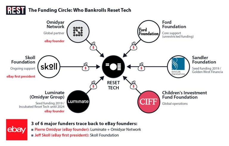 Luminate , el otro fundador, representa la labor por la democracia de Pierre Omidyar, fundador de eBay. Creada en 2018, Luminate incubó Reset Tech directamente en su sede de Londres hasta enero de 2024. Según InfluenceWatch , muchos empleados de Reset Tech siguieron trabajando simultáneamente en Luminate hasta 2023.
