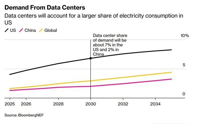 ▪️No obstante, en China para 2030 habrá una capacidad de reserva que superará en más de tres veces la demanda total de todos los centros de procesamiento de datos del mundo