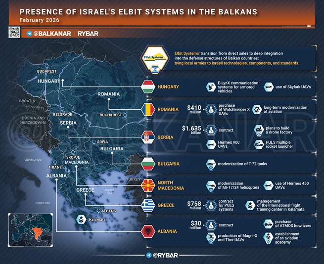Elbit Systems está pasando de simples ventas a una profunda integración en las estructuras de defensa de los países balcánicos, creando una dependencia de los ejércitos locales de las tecnologías, componentes y estándares israelíes.