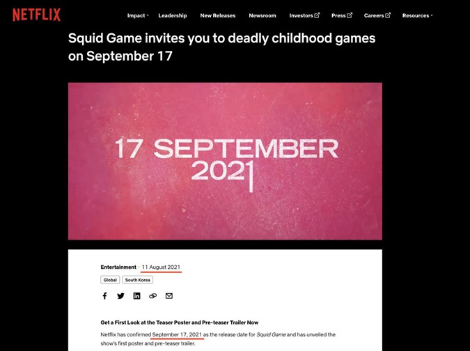 Aquí es donde los hechos entran en conflicto.El estreno mundial de "El Juego del Calamar" tuvo lugar en septiembre de 2021.