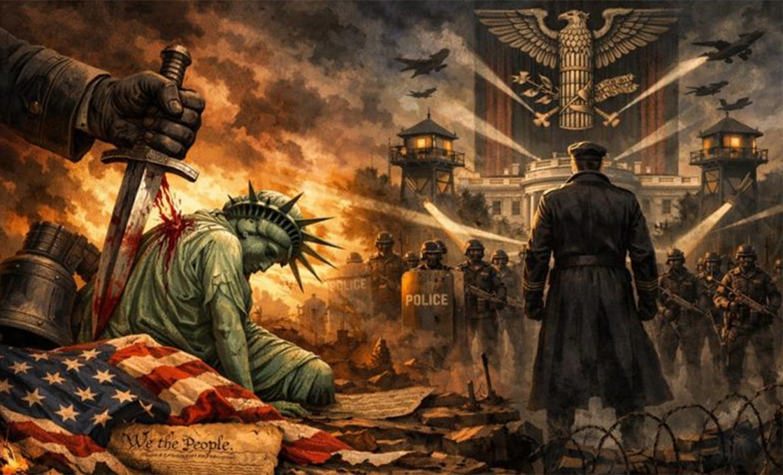 Será la sentencia de muerte del experimento democrático estadounidense, la metamorfosis final de la visión que tuvieron los padres fundadores hace unos 250 años de una tierra donde reinaba la libertad suprema, y hacia el mismo tipo de imperio tiránico del cual el pueblo estadounidense luchó por liberarse al nacer su nación.