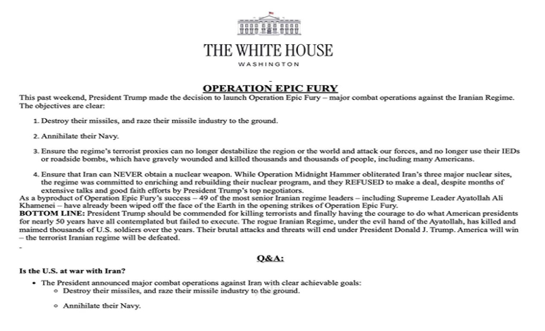 El documento de la Casa Blanca dice ahora que los objetivos son: