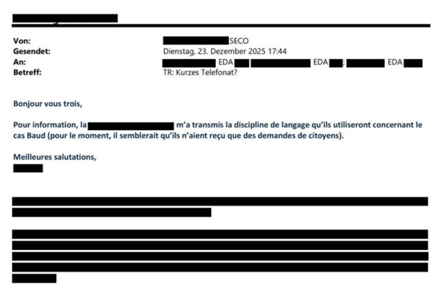 En una solicitud fechada el 29 de diciembre de 2025, Rafael Lutz, periodista de Weltwoche, pidió a la SECO acceso a los documentos relacionados con las sanciones impuestas a Jacques Baud.