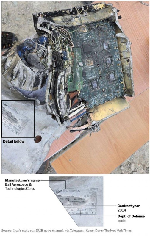 Las fotos, publicadas por primera vez por IRIB News de Irán, muestran escombros estampados con números de serie y marcas de contrato consistentes con las marcas de armas estadounidenses.