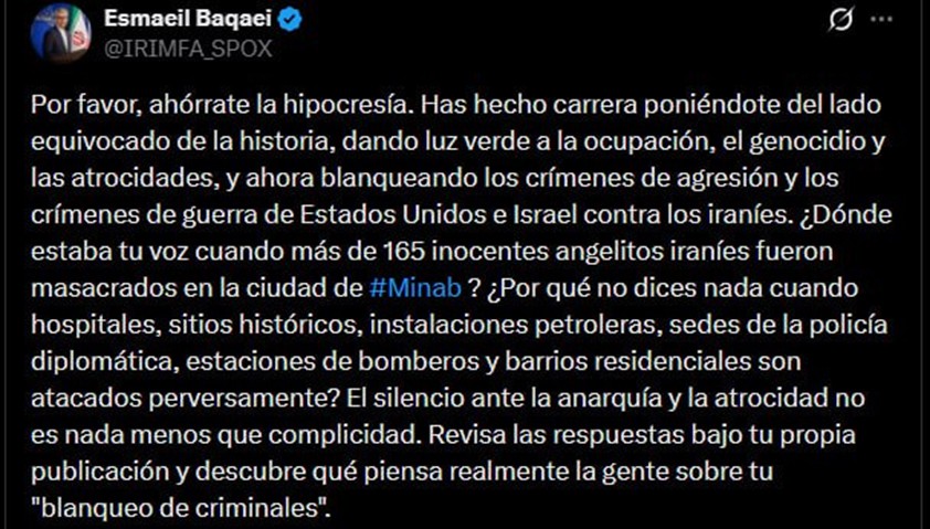 El portavoz del Ministerio de Asuntos Exteriores de Irán en respuesta a Von der Leyen.