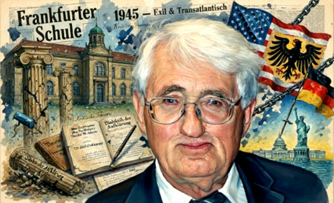 Tras defender su tesis doctoral en 1954 bajo la supervisión del ex activista nazi Erich Rothacker y publicar una crítica temprana de Heidegger, fue reclutado por la figura central de la futura "Escuela de Frankfurt", Theodor W. Adorno, para trabajar como asistente en el Instituto de Investigación Social de Frankfurt. Allí, Habermas transformó la llamada "teoría crítica" en una vaga teoría de la comunicación, contribuyendo así decisivamente a que el marxismo volviera a ser aceptable para una nueva generación de intelectuales e izquierdistas en Europa Occidental.