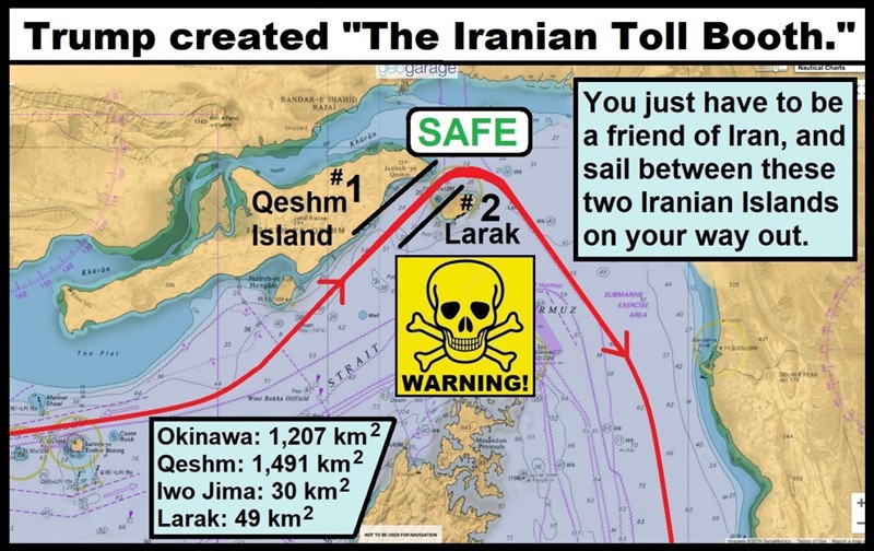 Si Irán comienza a cobrar alrededor del 10% por petrolero, según algunos informes, el país recaudará 800 mil millones de dólares anuales. Irán acaba de convertirse en el casero más poderoso del mundo. El Estrecho ya no es gratis.