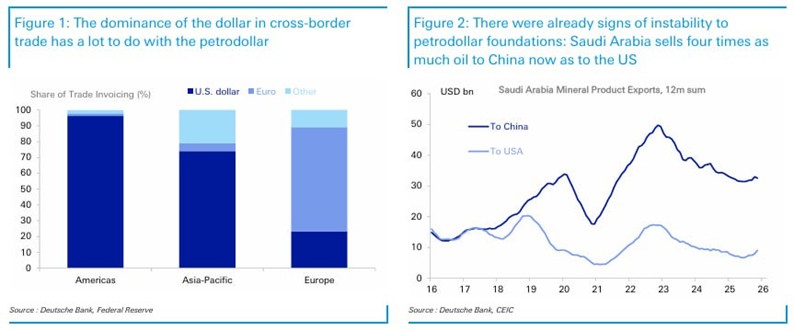 La mayor parte del petróleo del Golfo ahora fluye a Asia. Arabia Saudita vende más a China que a EE. UU. Los acuerdos y plataformas no denominados en dólares como mBridge ya no son teóricos, sino operativos, según Deutsche Bank.