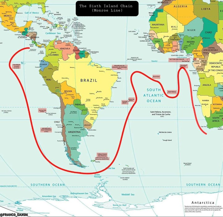 Estados Unidos propone crear una cadena estratégica de islas (tipo “sexta cadena”) para reforzar su control en el hemisferio occidental y limitar la influencia de China.