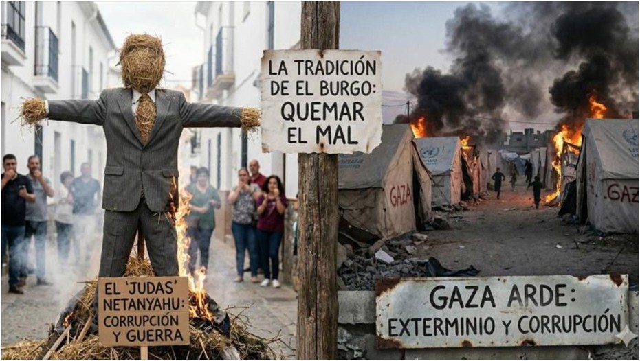 Pobre Benjamín. Qué piel tan fina se gasta el último gran heredero del cinismo colonial. Resulta que, en El Burgo, un pueblo blanco y digno de la Sierra de las Nieves, han cumplido con la tradición de la quema del “Judas” durante el Domingo de Resurrección. Este año, el monigote llevaba la cara de Netanyahu. Y claro, la maquinaria de victimización de Tel Aviv ya ha desenfundado el comodín del antisemitismo, poniendo el grito en el cielo por un poco de cartón y pólvora malagueña.