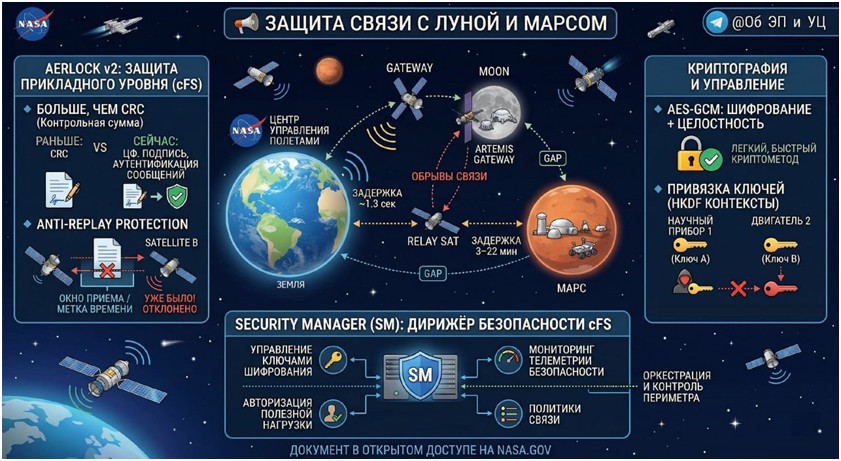 Para los usuarios comunes, la protección de las comunicaciones es el HTTPS en el navegador y el candado verde. Pero, ¿cómo proteger los datos cuando la señal viaja con varios segundos de retraso y es físicamente imposible reiniciar el "servidor"? La NASA ha presentado la arquitectura AerLock v2 y el Security Manager para cFS: el nuevo estándar de cómo funcionarán las comunicaciones seguras en los programas "Luna-Marte". El documento está disponible al público en el sitio web de la NASA.