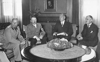 En mitad de ese torbellino se firmaron los Acuerdos de Múnich, suscritos el 30 de septiembre de 1938 por el propio Hitler, el dictador italiano Benito Mussolini, Neville Chamberlain (primer ministro británico) y Édouard Daladier (al frente del gobierno francés). La idea, sin embargo, no era que el Führer devolviera aquellos territorios que había conquistado, sino ofrecerle la posibilidad de quedarse con ellos a cambio de que abandonase sus ansias expansionistas. «El acuerdo le permitía incorporar la región de los Sudetes el 10 de octubre de 1938», explica Álvaro Lozano en «La Alemania nazi». En palabras de este autor, a Checoslovaquia solo se dieron dos opciones: entregar estas posesiones o combatir sola al nazismo. Y aceptó. Inglaterra, por su parte, pactó con el líder germano que sus dos países «jamás entrarían en guerra».