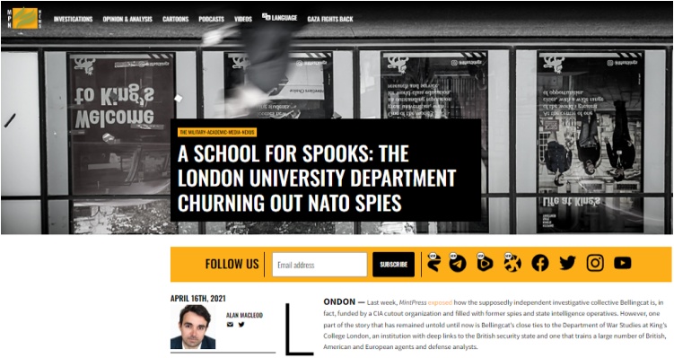 Para conocer el dinero, los trabajos y las conexiones de patrocinio entre Freedman y Bellingcat en la facultad de estudios de guerra del King's College, también en Londres, lea esto .