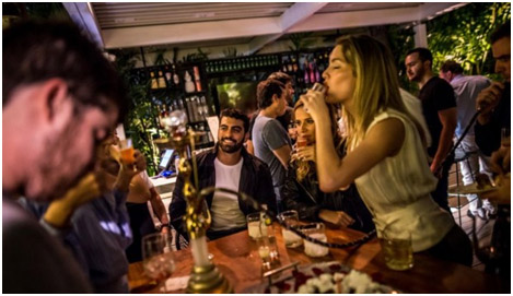Las personas toman algunos cócteles en la azotea del Bar 360, en Chacao. (Bloomberg)