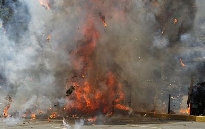 Un artefacto explotó e incendió al menos siete motos en la plaza Francia de Altamira, 2 de funcionarios y 5 de civiles dejando varios civiles y policías heridos, informa el periódico local El Nacional.