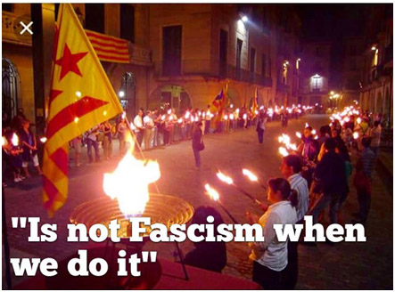 Algo parecido, salvando distancias, al que crearon en Yugoslavia la OTAN, siguiendo las órdenes de Alemania, que quería recuperar su colonia nazi de la segunda guerra, los EEUU del demócrata Clinton, y la UE, su limpia culos, dividiendo y fragmentando la república federal yugoslava, impulsando y azuzando diversos fascismos que se disputaron un territorio hasta su destrucción, previa muerte de miles de personas. Y así, una Yugoslavia independiente y soberana, con un nivel de vida y cultural muy aceptable, pasó a ser un ente troceado, con una Croacia nazi como entonces, con altos niveles de paro, una economía dependiente y estancada, sin ningún peso político en Europa y el mundo y una base militar de EEUU. Los independentistas catalanes, vascos, padanos y otros aplaudieron con las orejas esta destrucción, que para ellos representaba, como no, la libertad de varios pueblos "oprimidos" a través del ejercicio del derecho de autodeterminación. Ahora hacen lo mismo para animar a los golpistas catalanes.
