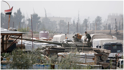 Además, el Ejército está cerca de levantar el cerco establecido por los militantes a la base de tratamiento de vehículos, en el suburbio de Harasta.