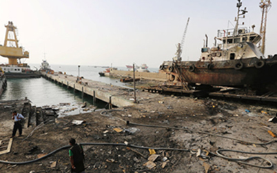 El puerto se encuentra en manos del movimiento popular yemení Ansarolá. Los Emiratos Árabes Unidos fijaron el martes como fecha límite para que las fuerzas populares se retiraran de la ciudad o enfrentarían ataques.