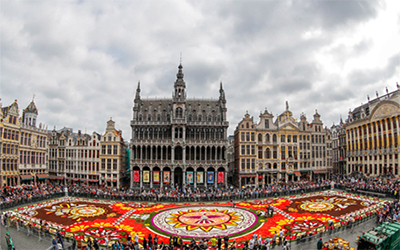 La impresionante alfombra de flores de la histórica plaza central de Bruselas se instala cada dos años a partir de 1971. Este año la obra, de unos 1.800 metros cuadrados, se titula 'Guanajuato, orgullo cultural de México' y está formada por más de 500.000 dalias y begonias.