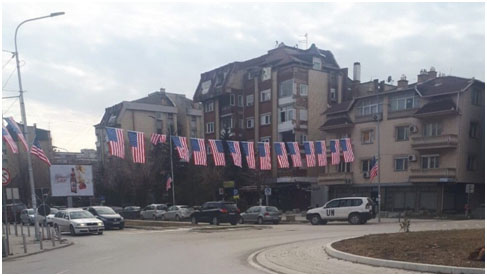 Las banderas de Estados Unidos adornan las calles de Kosovo mientras se votaba para crear el ejército del narcoestado