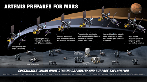 Otra visión más sensata para el espacio está representada por importantes funcionarios de la NASA como Jim Bridenstine, que han creado los Acuerdos Artemis de la NASA que piden un marco para la cooperación internacional pacífica en el espacio. Bridenstine y otros funcionarios de la NASA han trabajado incansablemente para lograr que Rusia y los EE. UU. formen alianzas en asuntos de minería espacial, defensa de asteroides y exploración del espacio profundo desde la directiva del presidente Trump de 2017 para devolver a la humanidad a la luna por primera vez desde 1972 con planes de ir a Marte poco después.