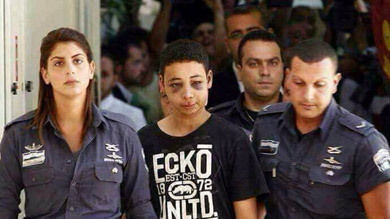 Esto es Israel: El niño Tarek Abu Khadir durante su presentación ante el tribunal con señales de tortura en la cara
