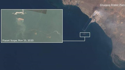 Imagen satelital del petrolero BW Rhine, anclado en el puerto saudí de Yedá, 15 de diciembre de 2020.