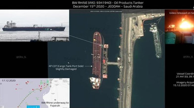 En el segundo caso, los medios reportaron, el 14 de diciembre, otro ataque producido cerca del puerto de Yedá en la costa occidental de Arabia Saudí. Posteriormente, Riad informó que el petrolero BW Rhine, perteneciente a la compañía naviera singapurense Hafnia, fue atacado por un barco cargado de explosivos de un grupo desconocido.
