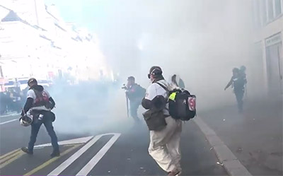 Este es el clima en París (Unión Europea). Y la reacción de la policía a quienes protestan contra las costosas políticas de vida y guerra de la OTAN