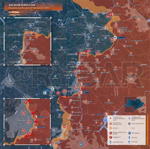 Estoy desconcertado por los analistas occidentales que minimizan la ofensiva rusa en el Donbass a lo largo de la línea defensiva que se extiende desde Bakhmut en el sur hasta Seversk en el norte como una especie de espectáculo secundario sin importancia estratégica. No estoy de acuerdo. No creo que Rusia esté preparando una "ofensiva de primavera". Se está llevando a cabo una ofensiva rusa en múltiples frentes y Ucrania está pagando un alto precio. Estos son algunos de los informes resumidos que describen la acción en los últimos días: