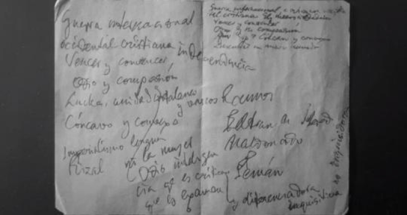 «Vencer y convencer, odio y compasión, odio inteligencia, lucha unidad catalanes y vascos, cóncavo y convexo, independencia, Rizal y los nombres de los cuatro oradores».