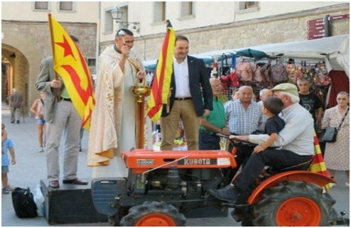 Banderas, cura y abuelo en tractor. Esta es la Cataluña del futuro, muy lejos de los paletos españoles.