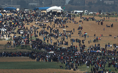 Miles de palestinos participan en protestas masivas a lo largo de la frontera entre Israel y la Franja de Gaza. Por su parte, las tropas israelíes están en alerta máxima a lo largo de la frontera y aplican una zona de "no intervención" para los palestinos junto a la cerca fronteriza de Israel.