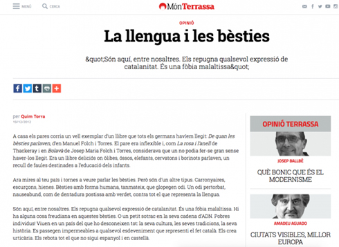Por ejemplo, el citado más arriba del el 19 de diciembre del 2012, publicado en el diario digital 'El Món' bajo el título 'La lengua y las bestias':