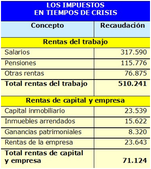 Hay que subrayar que ese desequilibrio aún se hace más sangrante si se tiene en cuenta que la Agencia Tributaria recaudó 1,62 veces más en concepto de pensiones que en la suma de lo recaudado por rentas de capital y de empresa.