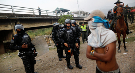 Los militares venezolanos se mantuvieron vigilantes de la frontera y respondieron con gases y perdigones a los que intentaban cruzarla, el igual que el domingo 24 y el sábado 23.