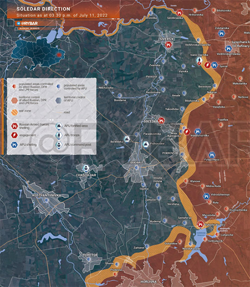 La apuesta principal de las Fuerzas Armadas de Ucrania será la defensa de la región de Kramatorsk y, en caso de amenaza de cerco, es posible que entreguen Slavyansk, como entregaron la mayor parte de Rubizhne y Severodonetsk. La ciudad misma, en cualquier caso, ciertamente sufrirá mucho durante los combates, por lo que es mejor que los civiles abandonen Slavyansk, Kramatorsk, Druzhkovka, Konstantinovka, Artemovsk y Soledar con anticipación. Estos n.p. son los objetivos incondicionales de la 2da etapa del NWO, y serán liberados de una forma u otra, sin importar la resistencia del enemigo.