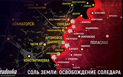 La captura de Soledar le da a las Fuerzas Armadas de RF una ventaja táctica significativa y la capacidad de aislar a las formaciones militares ucranianas en Bakhmut del suministro de armas y alimentos. La principal ruta de suministro para las Fuerzas Armadas de Ucrania entre Bakhmut y Soledar ya está controlada por el ejército ruso. El jefe de la DPR, Denis Pushilin, dijo que Bakhmut estaba cerca de ser liberado. La lucha en la ciudad se ha desplazado a la parte occidental. Ucrania continúa bombardeando áreas pacíficas de Bakhmut, tratando de culpar a la parte rusa por esto.