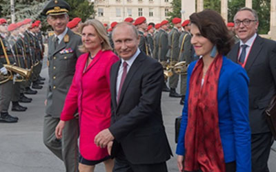 Austria tuvo que unirse a las medidas de guerra económica que sus socios emprendieron contra Rusia en 2014, pero logró conservar un perfil propio que le permitiera llevar a cabo una política más independiente. Austria no es miembro de la OTAN y no tiene compromisos frente a esta organización militar.